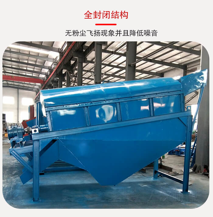 1,全封閉結構,無粉塵飛揚現象並且降低噪音,.篩分效率高且不堵網